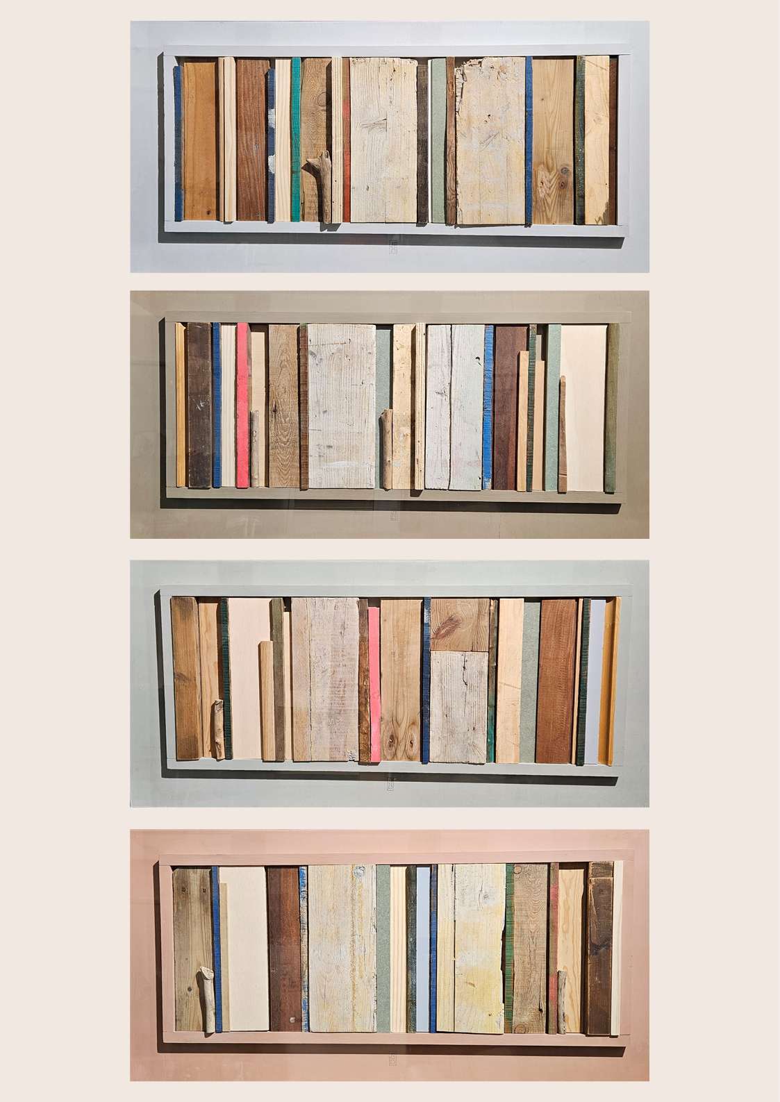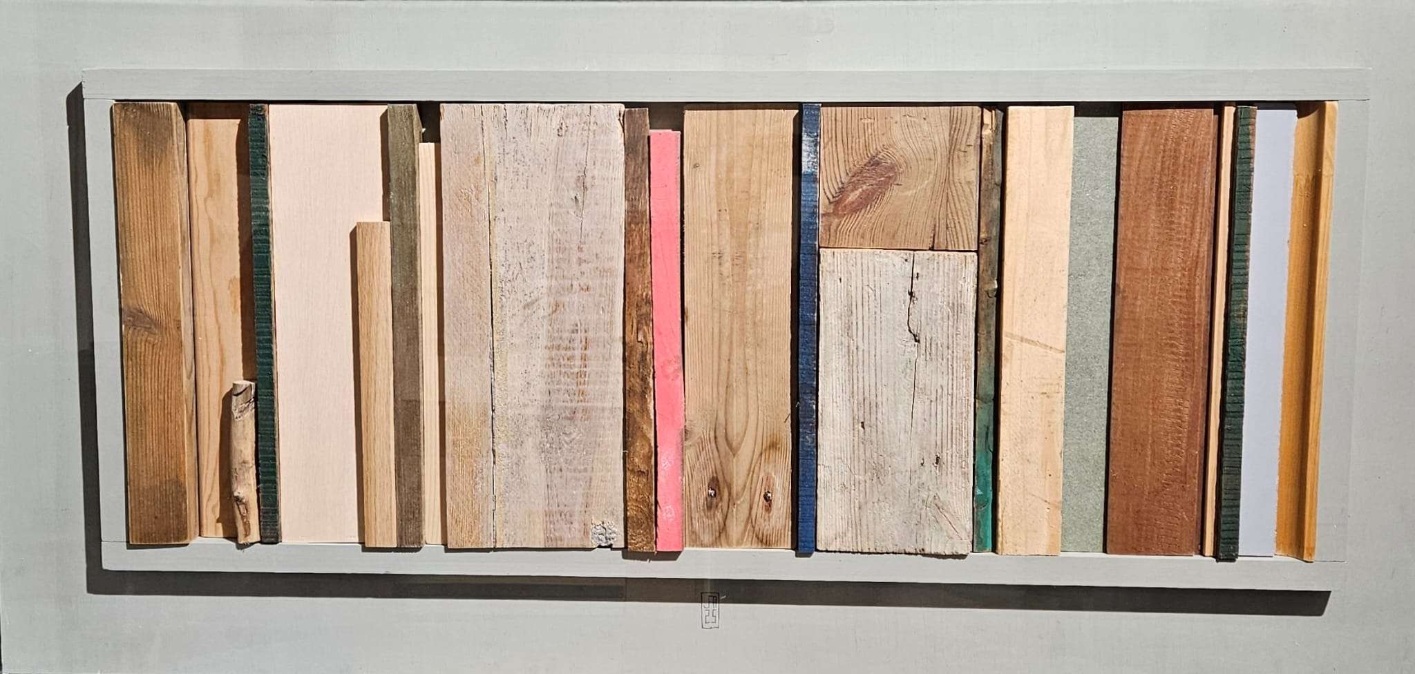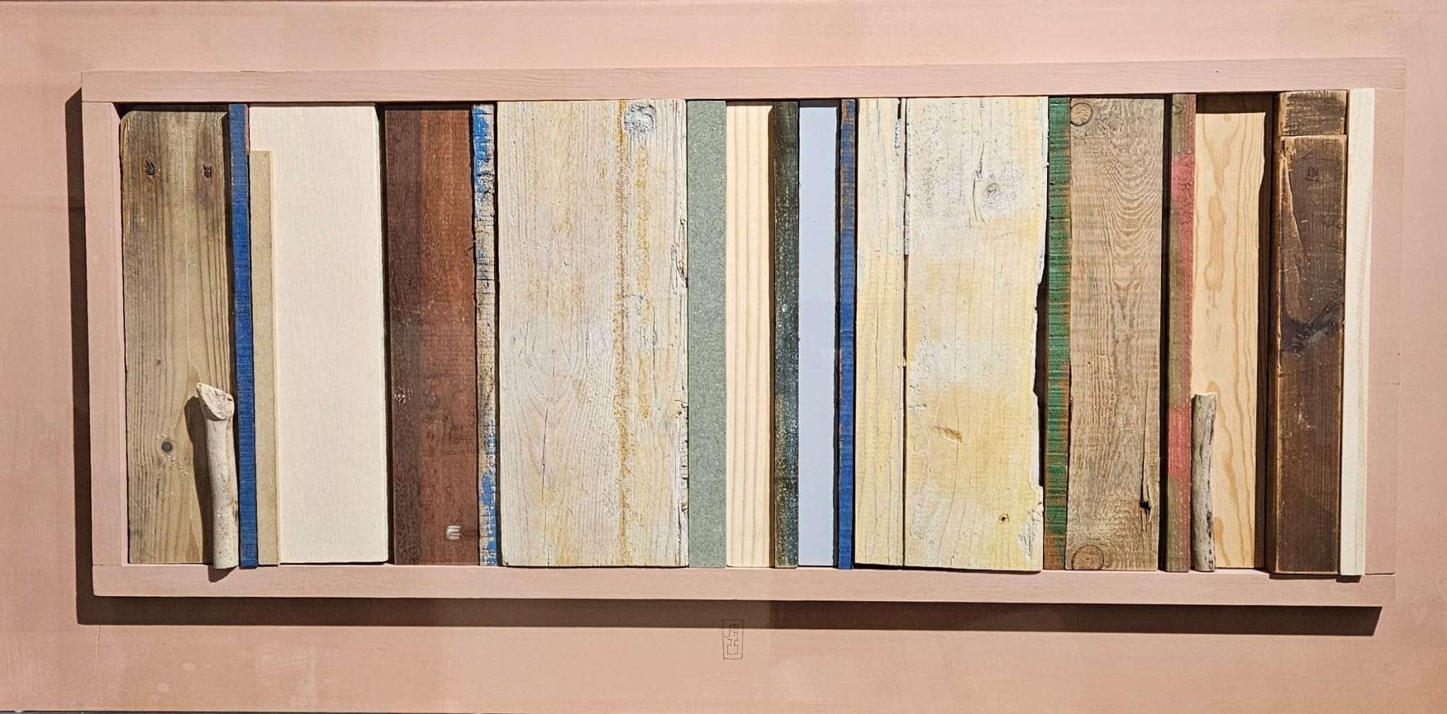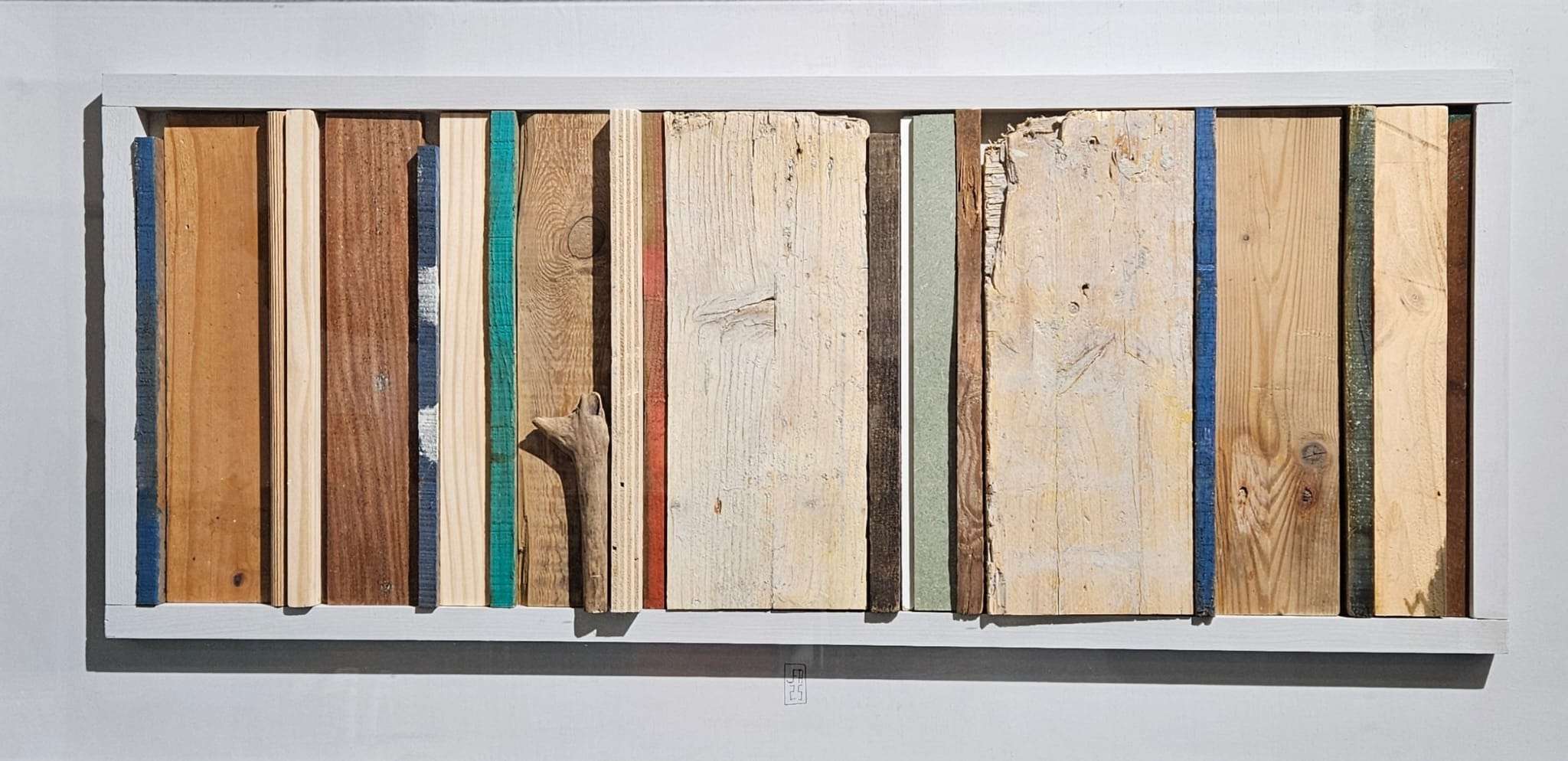 En esta colección, Jorge de la Fuente trabaja con fragmentos de madera recuperada que alguna vez formaron parte de otros objetos y construcciones. Cada pieza conserva sus marcas, desgastes y restos de color, elementos que el artista reorganiza para crear composiciones sencillas pero llenas de tensión y armonía.