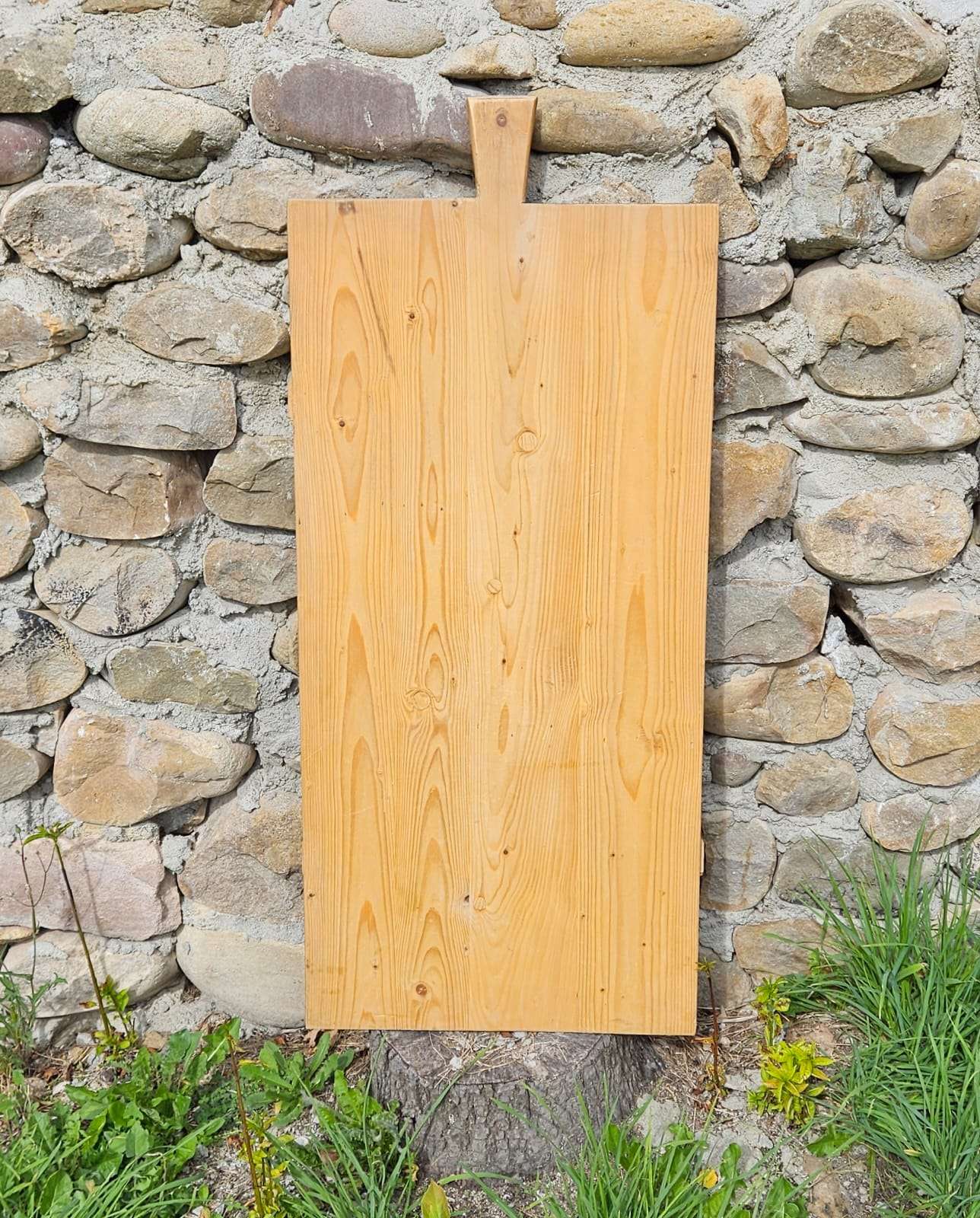 Tablas antiguas de madera maciza. Son piezas grandes, sólidas, con ese desgaste natural que solo dan los años y el uso real. Se aprecian las vetas marcadas, los nudos y pequeñas huellas que cuentan su historia sin perder su sencillez.